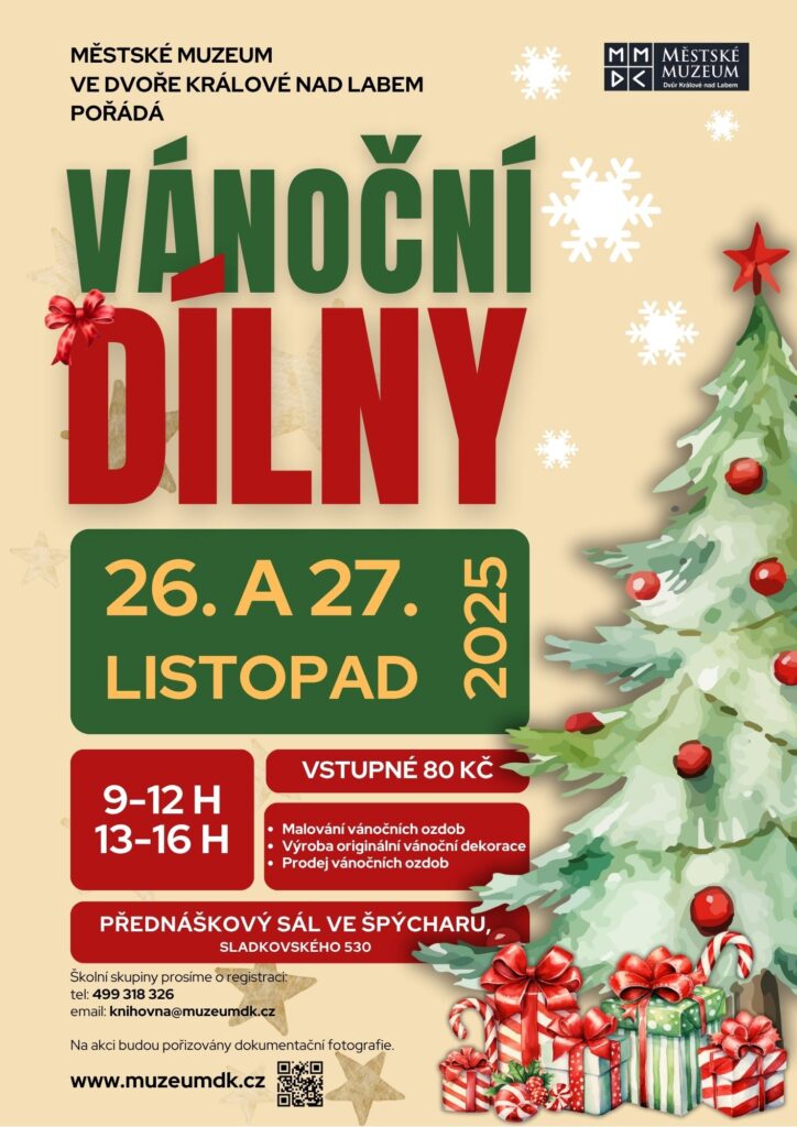 Zpříjemněte si adventní čas při tvořivých vánočních dílnách. Vyzkoušíte si zdobení skleněných ozdob, výrobu andělských dekorací a jednoduchou techniku tkaní, se kterou snadno vytvoříte sváteční motivy. Dílna je určena pro děti i dospělé a nabídne prostor pro tvořivost i klidné zastavení v předvánočním shonu.
